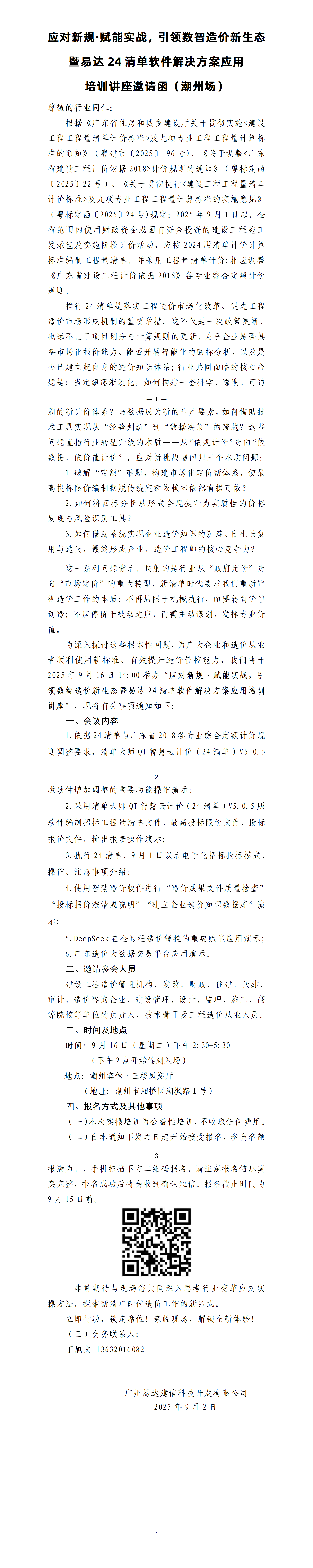 | 应对新规·赋能实战,引领数智造价新生态暨易达24清单软件解决方案应用培训讲座邀请函(潮州场) |