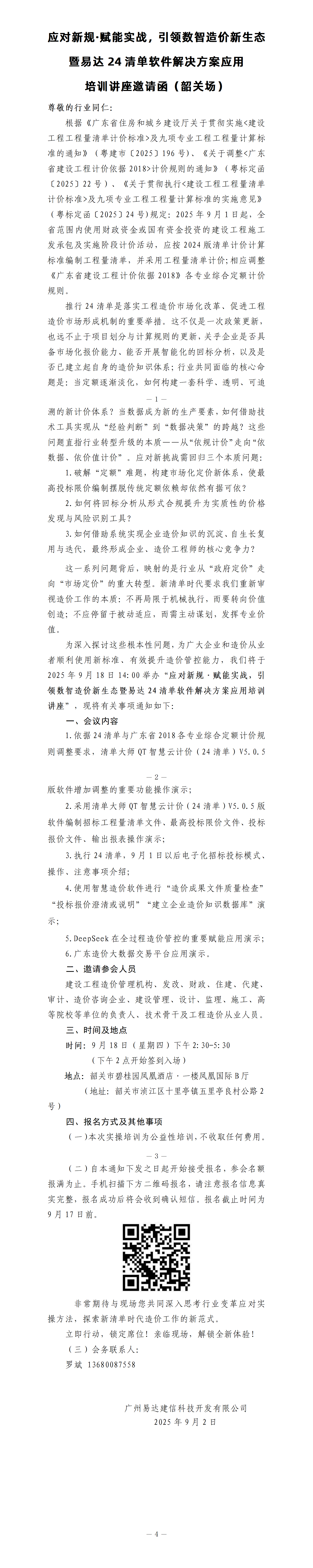 | 应对新规·赋能实战,引领数智造价新生态暨易达24清单软件解决方案应用培训讲座邀请函(韶关场) |
