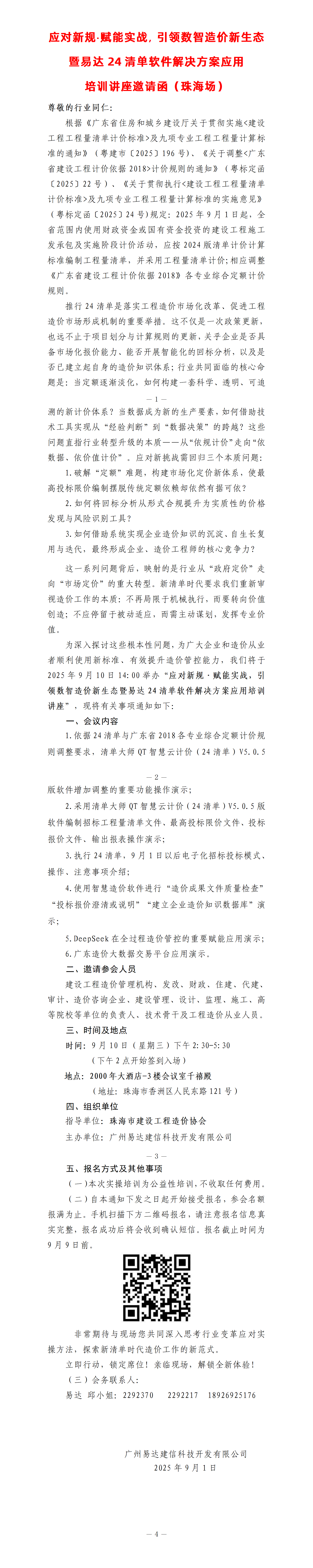 | 应对新规·赋能实战,引领数智造价新生态 暨易达24清单软件解决方案应用培训讲座邀请函(珠海场) |